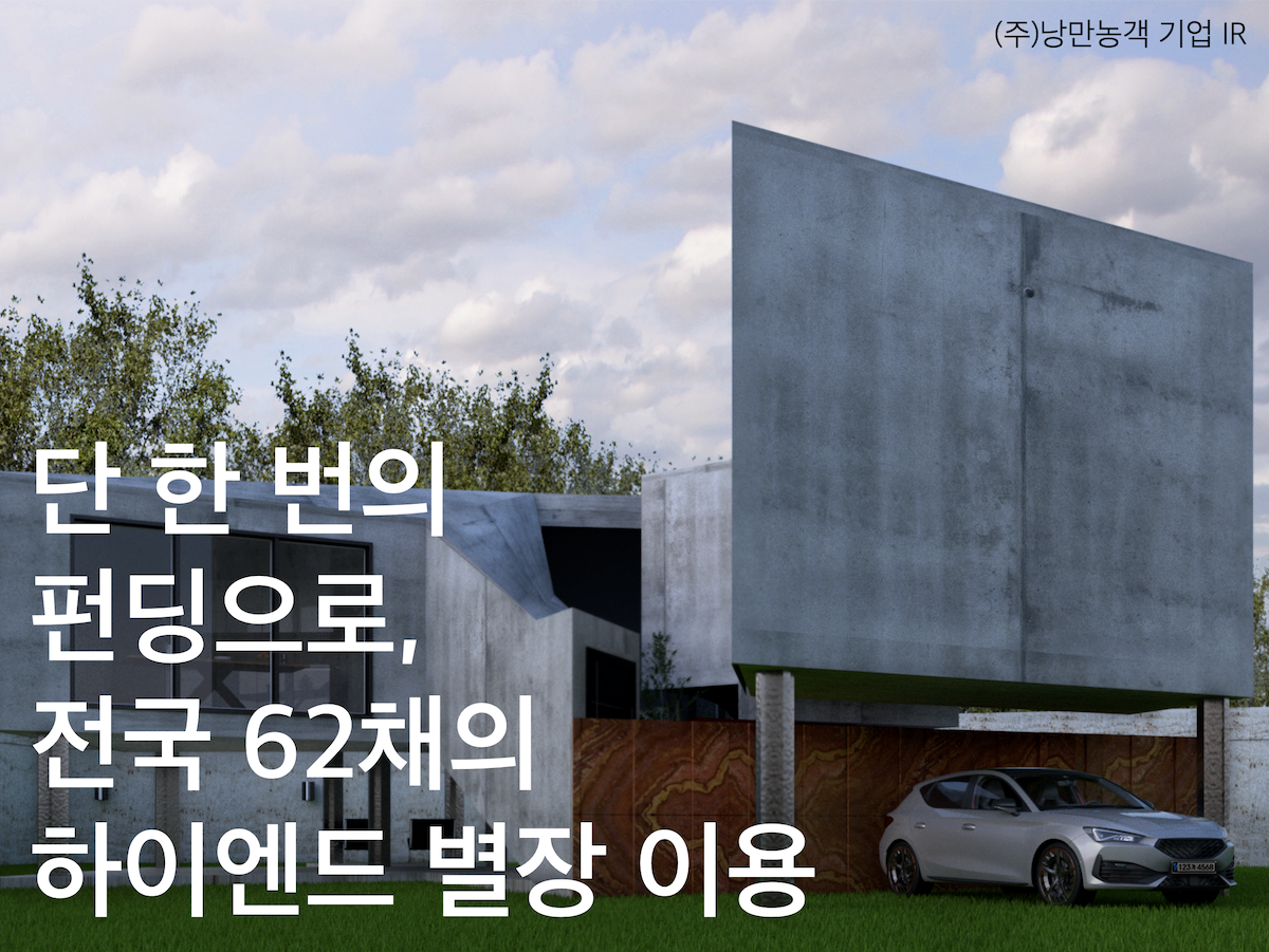 낭만농객은 대한민국 46%인 소멸 위기 지역의 빈 집들을 활용 가능하게 만드는 일을 합니다. 지역의 방치 공간에 단 한가지 기능을 하는 공간들(숙박, 영화관, F&B, 코워킹 공간 등)을 구축하고 이를 물리적으로 가까운 거리에 배치합니다. 결국 좁은 마을 단위에서 2박 3일 이상 체류할 수 있는 구조를 만들어 내고자 합니다.